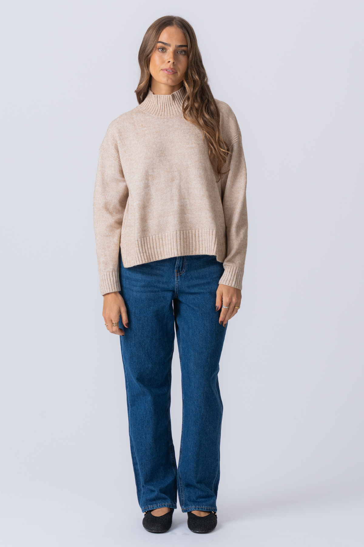 Abbraccia l'eleganza accogliente con TeeShoppen's Oversized Maglia con collo a polo - Beige per le donne
