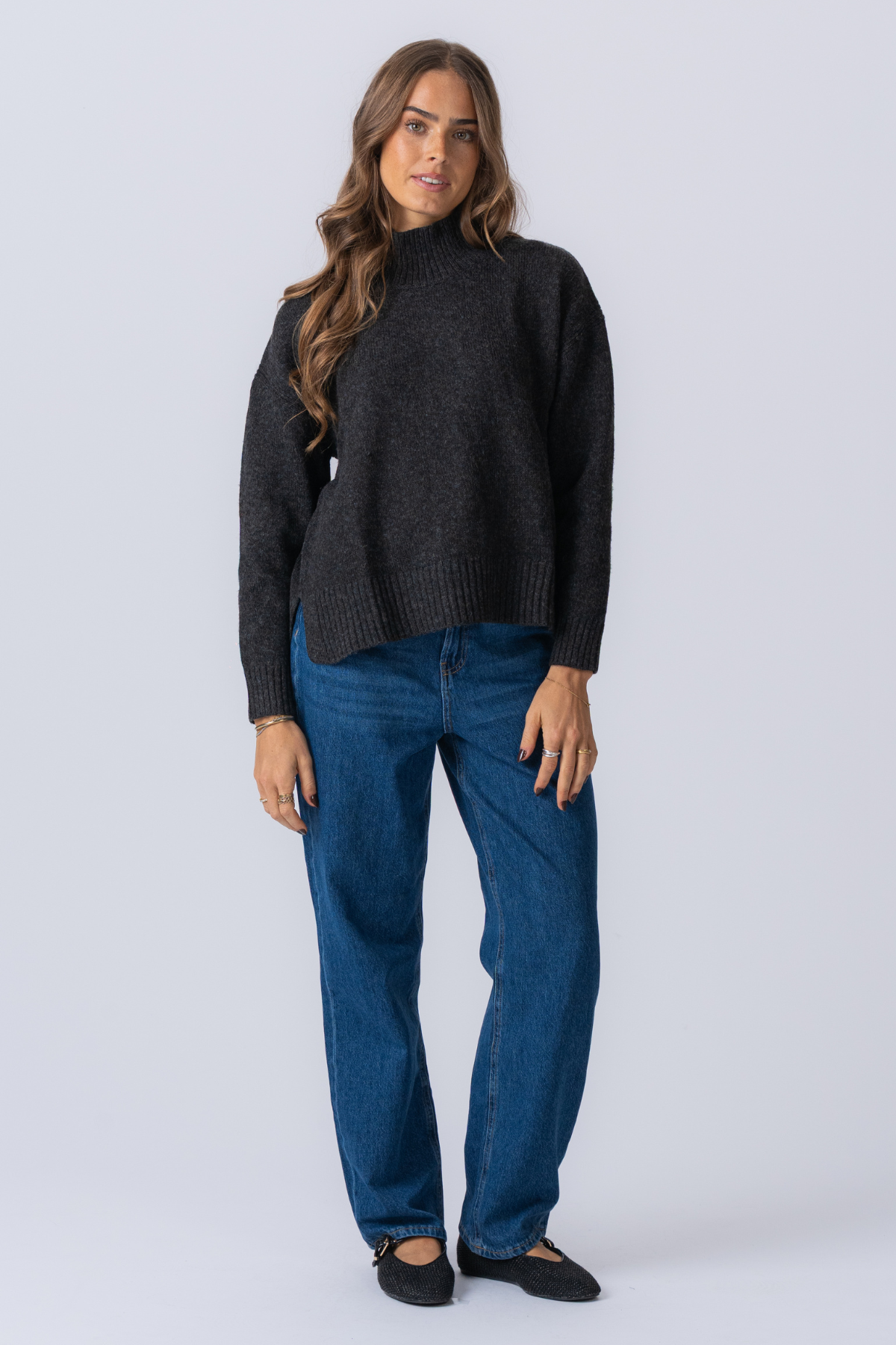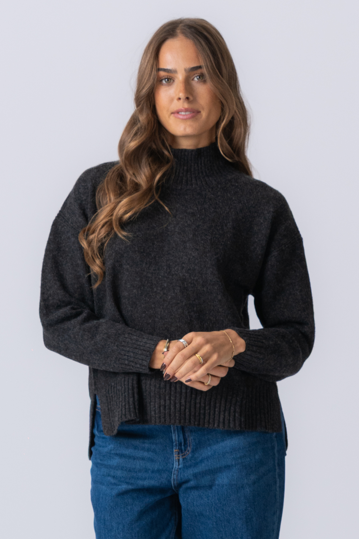 L'elegante tonalità grigio scuro melange si adatta a qualsiasi guardaroba.