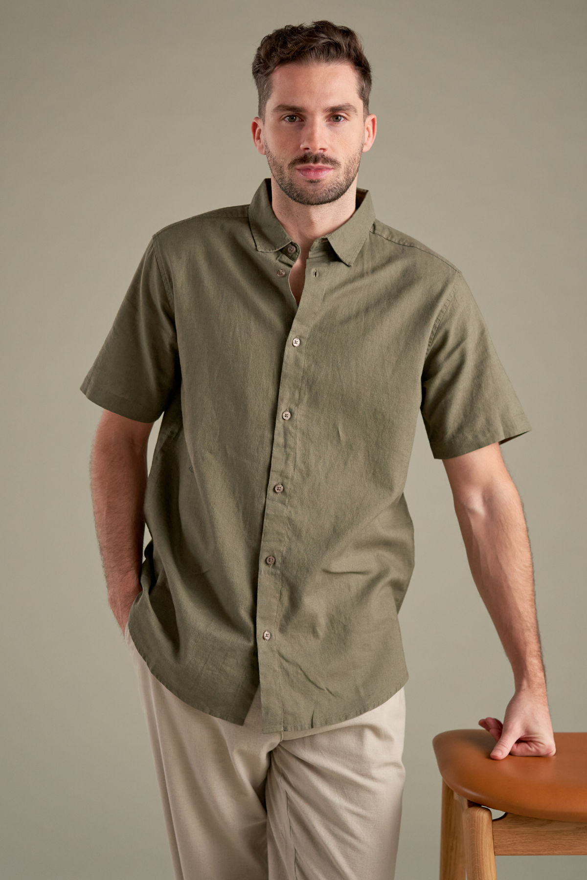 Step into effortless style with our Short Sleeve Linen Shirt in Army, the ultimate summer essential for men. Crafted to perfection, this shirt intertwines the luxurious feel of linen with a touch of modern sophistication, making it a must-have in every wardrobe. Whether you are heading for a casual day out or a laid-back evening gathering, this linen shirt is designed to enhance your look effortlessly. Its classic army green color exudes a sense of confidence and versatility, easily pairing with a range of outfits. The lightweight, breathable fabric ensures you stay cool and comfortable even on the hottest days, making it perfect for any occasion be it brunch, a weekend getaway, or a relaxed stroll along the beach. With its short sleeves, this shirt provides a relaxed fit that doesn't sacrifice style. The button-down front allows for easy wear, while the high-quality linen blend adds that touch of class. By choosing our Short Sleeve Linen Shirt, you're opting for not just fashion, but functionality as well. It's machine washable which means you can enjoy its benefits over and over without worrying about wear and tear, elevating your style with minimal effort.