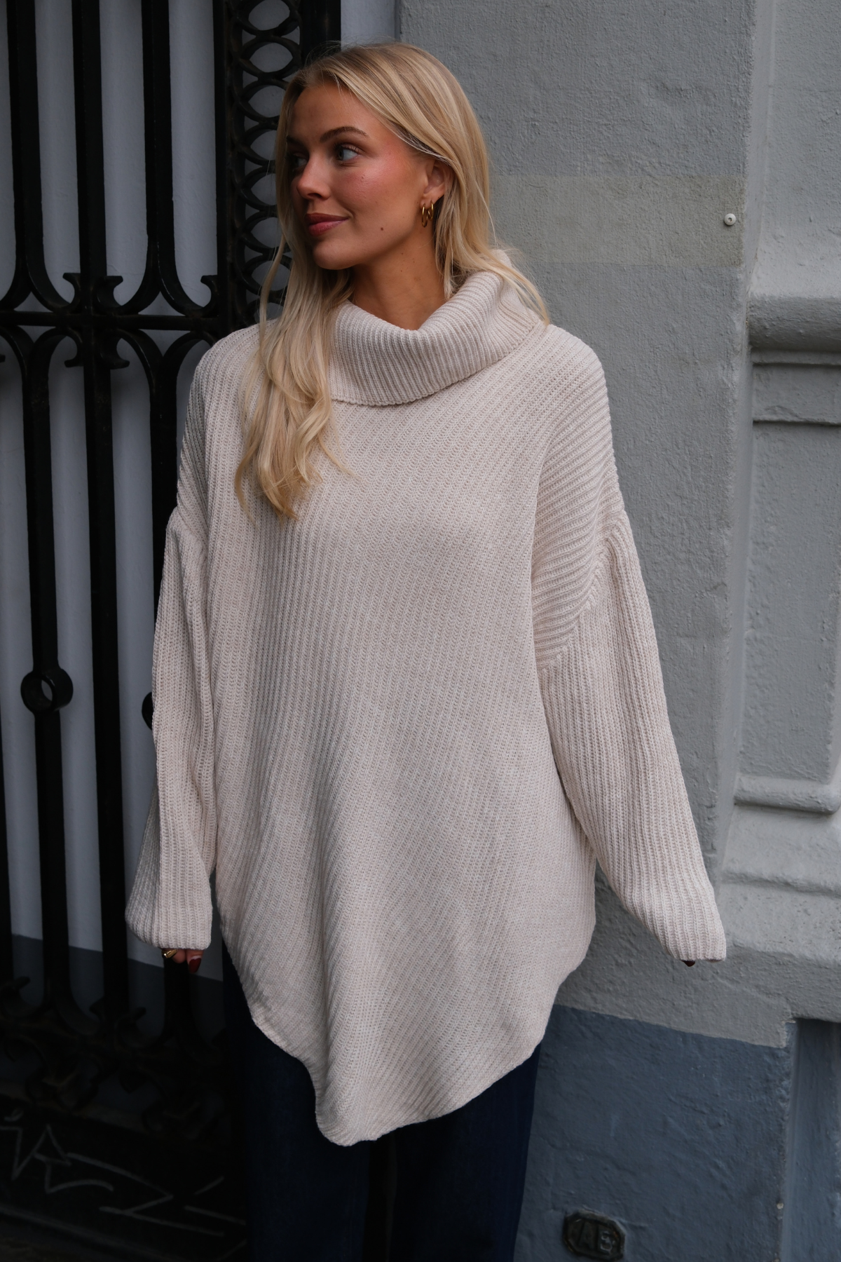 Il punto fermo del guardaroba: Reso in un beige versatile e classico, questo maglione in maglia è un vero camaleonte. Si integra perfettamente nel tuo guardaroba esistente, offrendo infinite possibilità di styling e un tocco di lusso tranquillo alla tua vita quotidiana.