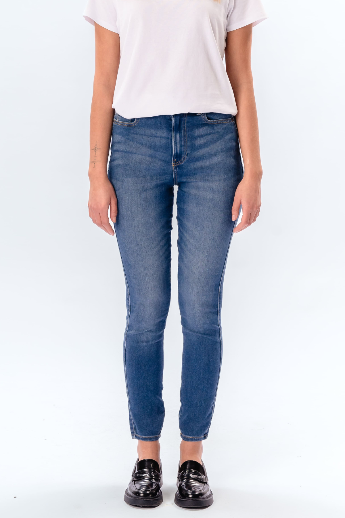 - Vestibilità: Vestibilità skinny con vita media e vestibilità aderente su fianchi e cosce, per una silhouette perfetta.